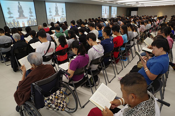 法會第一天進行灑淨安位儀式,第二天禮拜《地藏懺》,第三天則誦持《地藏菩薩本願經》。地藏菩薩行孝成道,乃至幫助眾生離苦,更為此發下「地獄不空,誓不成佛;眾生度盡,方證菩提」的誓願。大眾隨經文入觀,學習地藏菩薩無盡的悲願及精神,從自我做起,止惡修善,願利益過去及現世一切眷屬及眾生。最後一天並於二樓的贊普區,敬備甘露法食,普施十方眾生。