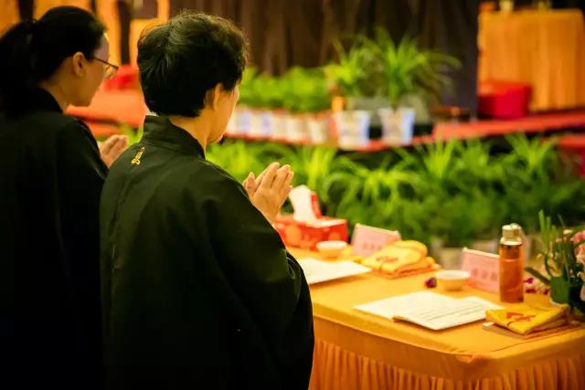 随后,善信在法师的带领下至诚恳切礼佛、念佛名号、虔心拜《慈悲地藏宝忏》。
