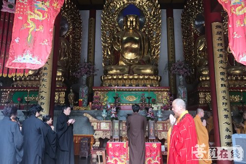 下午14时30分,举行地藏菩萨祝圣普佛法会。两序大众诚心唱诵香赞,称诵地藏王菩萨圣号,拜愿回向等,共同祝祷吉祥。愿以此功德,祈愿地藏菩萨慈悲,三界众生早日得度。