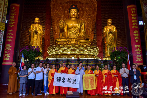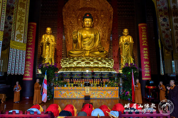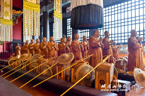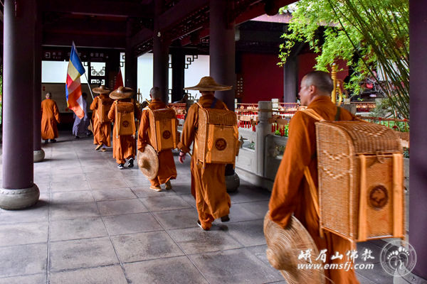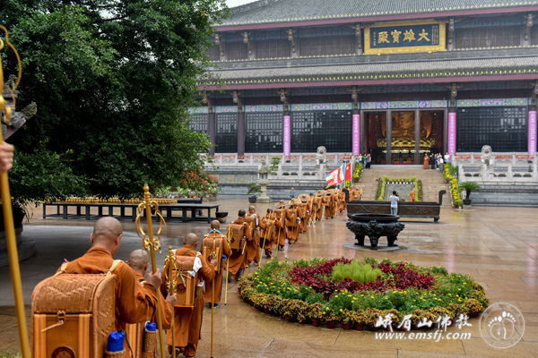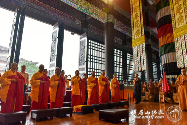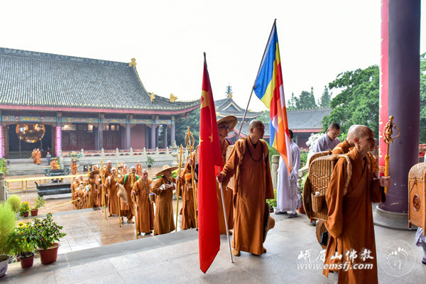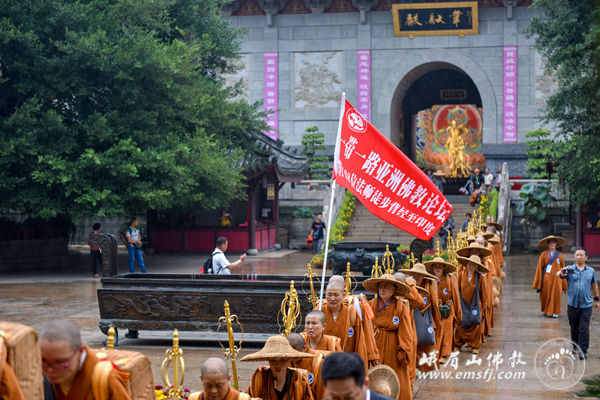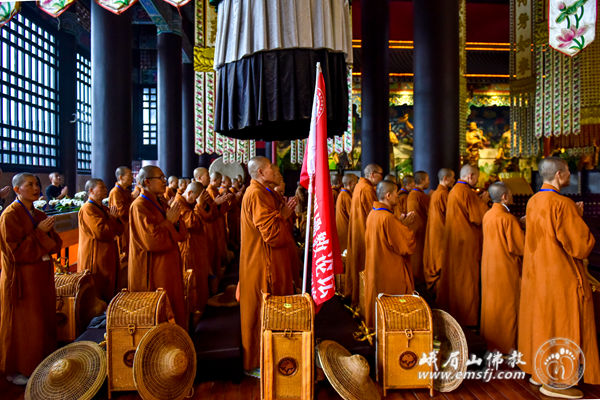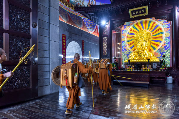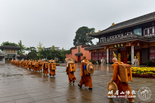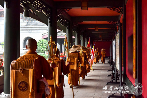 2017年9月25日,徒步背经西行的108位僧人朝礼峨眉山,在大佛禅院受到监院昌明法师热情接待。在昌明法师的陪同下,法师们从弥勒殿起,逐殿朝圣礼佛,并在大雄殿诵经回向,感恩普贤菩萨的加持及众佛弟子的护持,祈愿此次背经赴印度活动圆满。