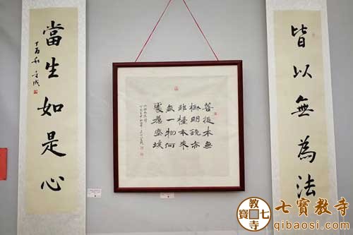 在妙安法师的陪同下,来访者一行参观了七宝教寺中华民族万姓祖先纪念堂、大雄宝殿、药师殿、琉璃宝塔等主要殿堂,还特地去显通殿参礼本命元辰,观赏了七宝教寺近期举办的“清秋素墨禅韵”书画展。在参访过程中,参访者对本寺宁静祥和的寺院环境表示了充分的肯定。
