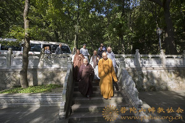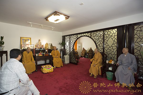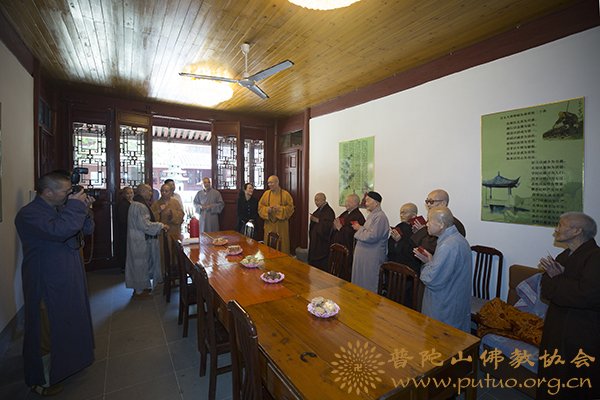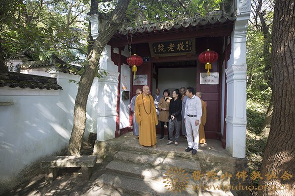 普陀山-朱家尖管委会党群工作部副部长卢启良,佛协办公室主任昌智法师,弘法办主任寂戒法师,办公室副主任孙波居士等陪同。