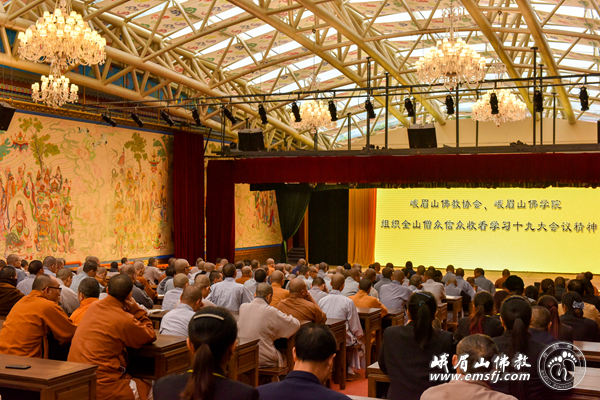 2017年10月18日,中国共产党第十九次全国代表大会在人民大会堂隆重召开。在峨眉山佛协的组织、安排下,佛协本部、大佛禅院及峨眉山佛学院僧众职工400余人在大佛禅院峨眉讲堂集中观看了开幕会盛况,各片区寺院也分别组织统一收看。