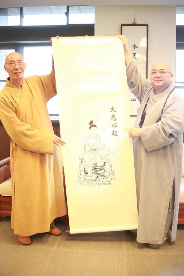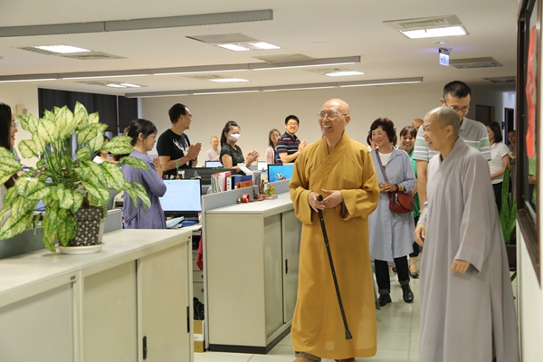 對於佛教教育、文化特別關注的淨海長老,此行也特意到法鼓文理學院參訪,並與師生們親切問候,邀請方丈和尚果東法師與僧團、學生都能前往美國玉佛寺交流。在園區行程圓滿後,淨海長老一行並前往法鼓山雲來寺拜訪法鼓文化的編輯部法師、居士,與大眾分享和聖嚴法師的故事。
