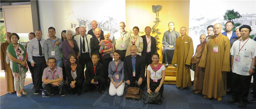「2017年佛光山大學校長論壇」全球五大洲16個國家地區、40餘位知名大學校長、學者,11月7日上午到佛光山蘭陽別院參加閉幕典禮,住持覺來法師親自導覽甲子紀念堂,從大師因「一諾千金」,跟隨志開上人出家,到弘法世界五大洲,其艱辛過程和度眾心願,讓來訪人員無不讚佩不已,紛紛表達個人的心得。