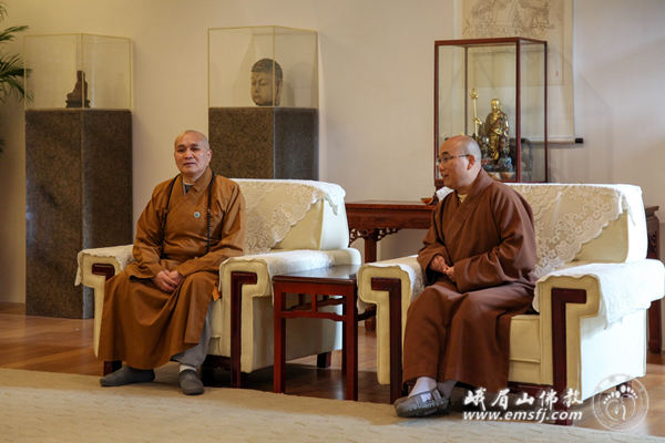2017年11月19日,永寿大和尚一行赴杭州灵隐寺参访礼佛,灵隐寺方丈光泉大和尚热情接待,并陪同逐殿拈香礼佛。随后,宾主双方就灵隐寺与四川佛教的殊胜因缘及加强峨眉山与灵隐寺之间的合作交流等议题座谈交流并互赠礼品。