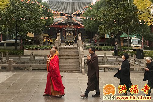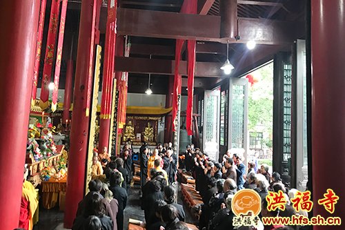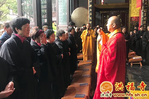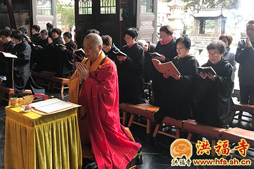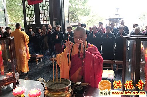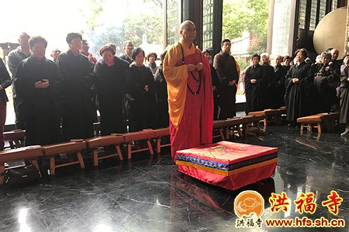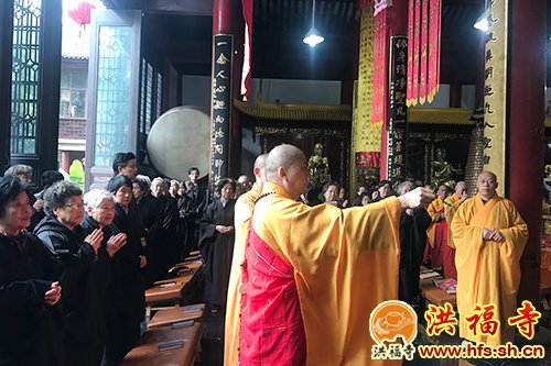 2017年11月15日,上海洪福寺隆重举行药师法会,法会首日:洒净、熏坛、礼拜药师宝忏。上午,本寺僧众居士齐聚一堂,法会由本寺住持圣怀法师亲自主法。