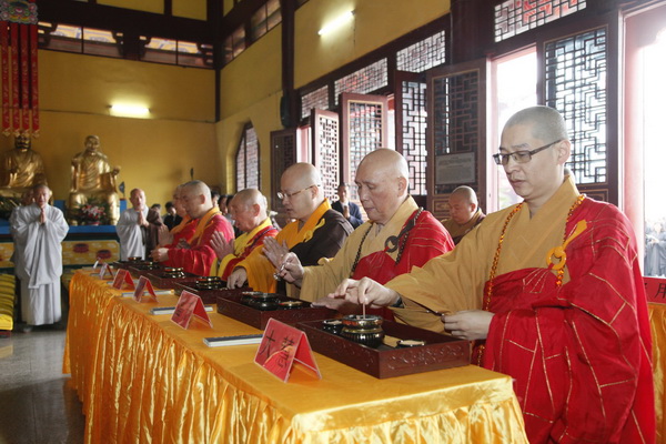 法会于当日上午9时整在四祖寺大雄宝殿正式开始,台湾中国佛教会国际部主任、新北市佛教会理事长净耀长老,法鼓山副住持果醒法师,佛光山都监院第五文书事主任慧宜法师,慈济功德会人文志业发展处主任、慈济大学副教授何日生先生,湖北省佛教协会会长、五祖寺方丈正慈大和尚,黄梅四祖寺方丈明基大和尚、五台山善财洞能修大和尚等鄂台两地高僧大德、专家学者以及四祖寺、老祖寺、安国寺和芦花庵等寺院僧众和信众居士五百余人共同参加了此次法会。