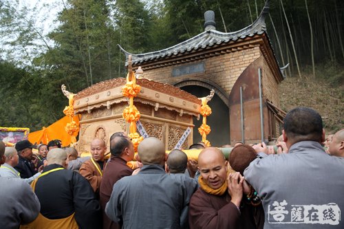 一诚长老法龛到达化身窑(图片来源:菩萨在线 摄影:妙雨)