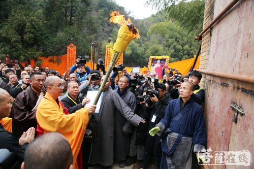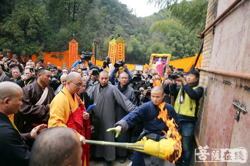 打一圆相,投炬便燃,白烟升起(图片来源:菩萨在线 摄影:妙雨)