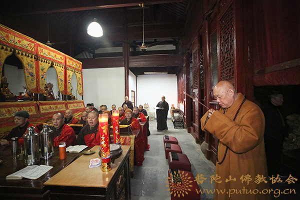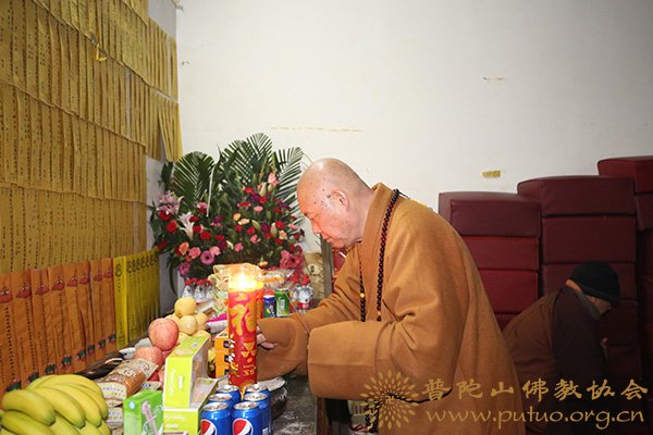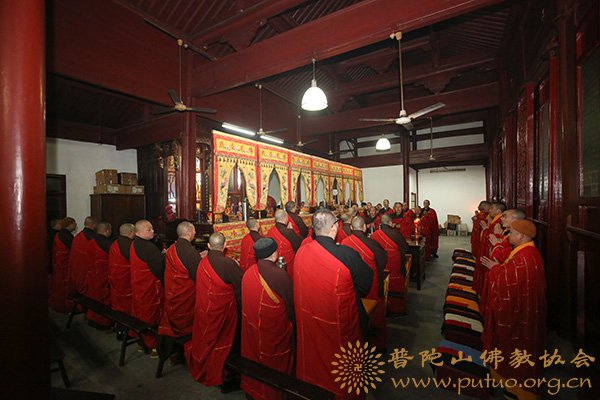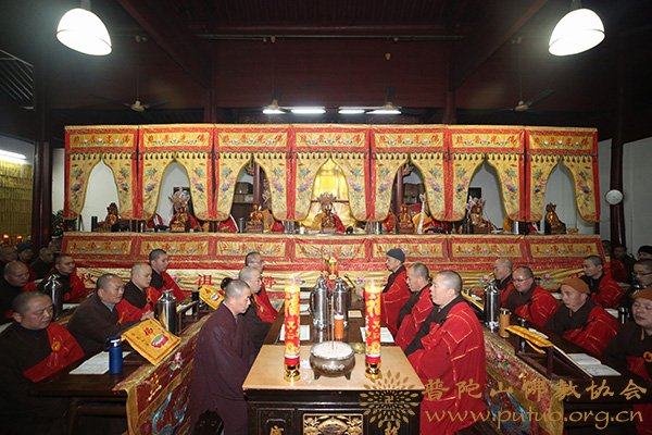 2017年12月22日(农历丁酉年冬至),“慎终追远、崇德报恩”九大士焰口法会在普陀山普济禅寺地藏殿隆重施放。普陀山佛教协会全体法师与普济禅寺两序大众共同参加。