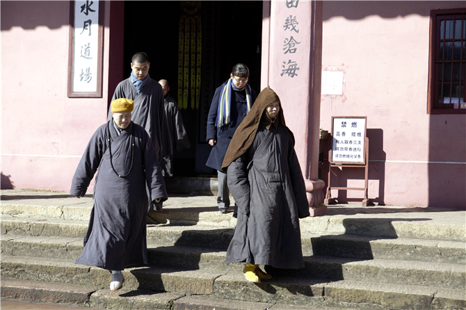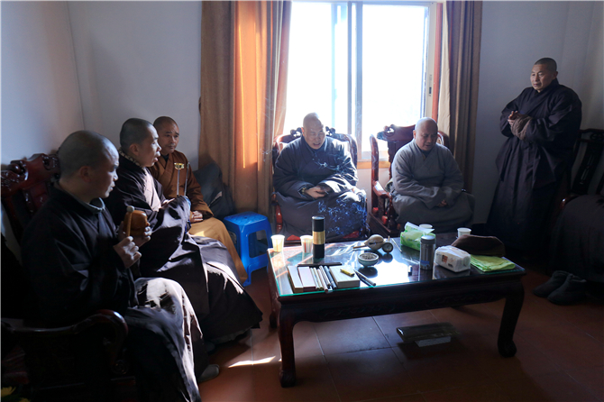 圣一长老、传印长老与一诚长老在庐山东林寺