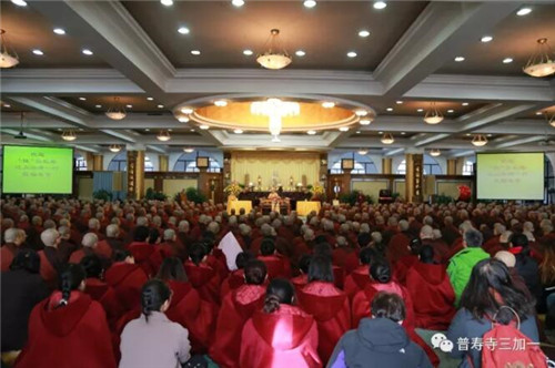 性空长老和达义法师为千名普寿寺学僧开示现场