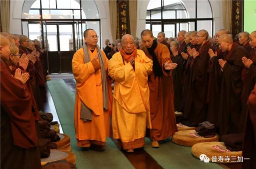 2017年的12月3号,逢103岁梦参长老追思法会,94岁的性空长老和达义法师应邀前往五台山普寿寺,为千名普寿寺学僧开示。