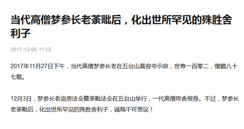 网上谣传梦参长老舍利现世 真容寺方丈隆明法师发文辟谣