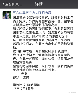 经求证,得知舍利分拣工作尚未完成,所以梦老舍利现世事件系网络谣传。五台山真容寺方丈隆明法师发文辟谣,声明如下: