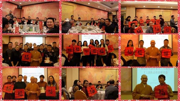 最后贤空法师举杯,为大家送去了吉祥的祝福,各位义工菩萨共饮甘露,欢喜无尽
