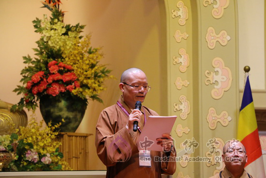 代表团副团长圣凯法师在研讨会闭幕式上致辞