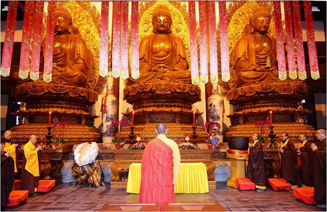 是日下午四点,缁白二众在维那师的引领下,进行了念佛大回向,声声佛号,契入弥陀愿海,步步莲花,趋近极乐故乡。佛三法会功德圆满,诸佛欢喜,龙天赞叹。