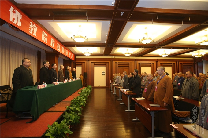 2017年12月14日,由中国佛教协会主办,浙江省佛教协会协办,杭州市佛教协会承办的全国佛教院校教师研修班在杭州灵隐寺正式开班。中国佛教协会副会长宗性法师、国家宗教事务局四司院校处王蕾处长、浙江省民族宗教事务委员会陈振华副主任、杭州市民族宗教事务局唐明壮副局长、中国佛教协会副秘书长宏度法师,中国佛教协会副秘书长、浙江省佛教协会副会长、杭州市佛教协会会长光泉法师,中国佛教协会教育培训部主任园慈法师等领导嘉宾出席了开班仪式,共有来自全国35所佛教院校的百余名唯识专业的教师参与为期一周的研修,开班仪式由宏度法师主持。