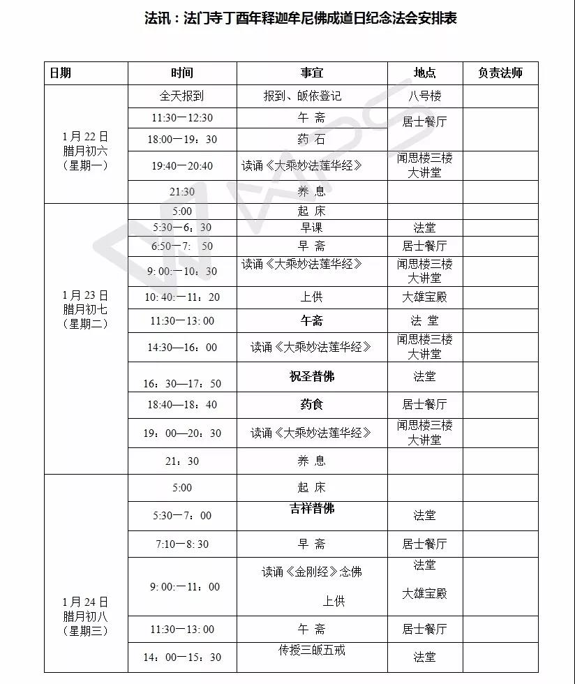 法门寺将于农历腊月初六至初八(公历2018年1月22--24日)举行释迦牟尼佛成道日纪念祈福法会,祈愿世界和平、国家昌盛、社会和谐、人民安乐。