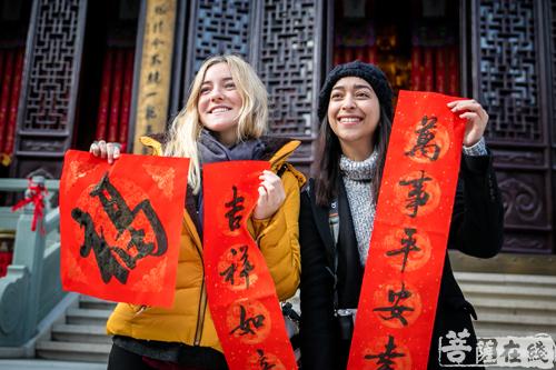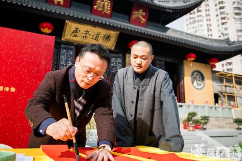 沪上书法家为广大市民题写春联活动于上海玉佛禅寺举行