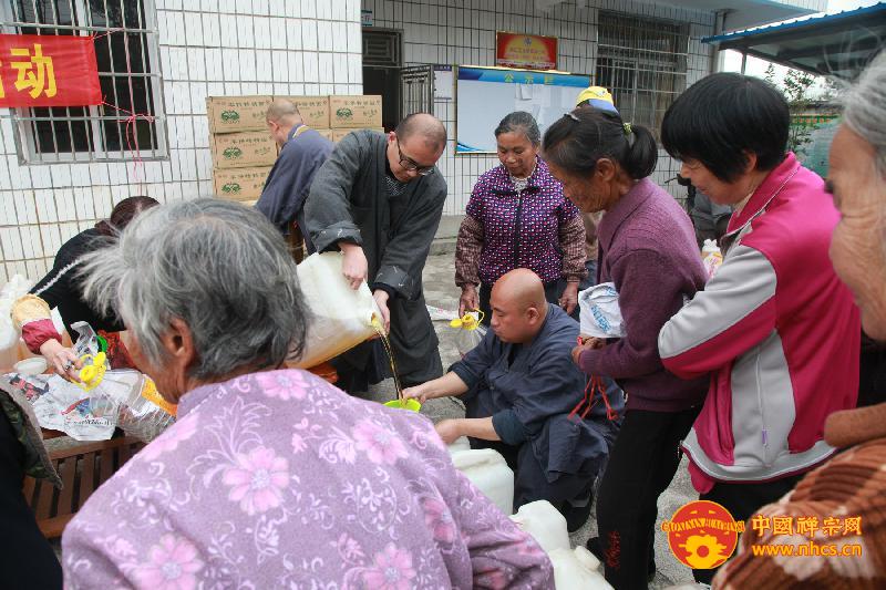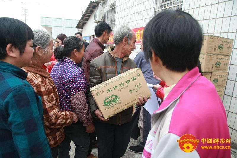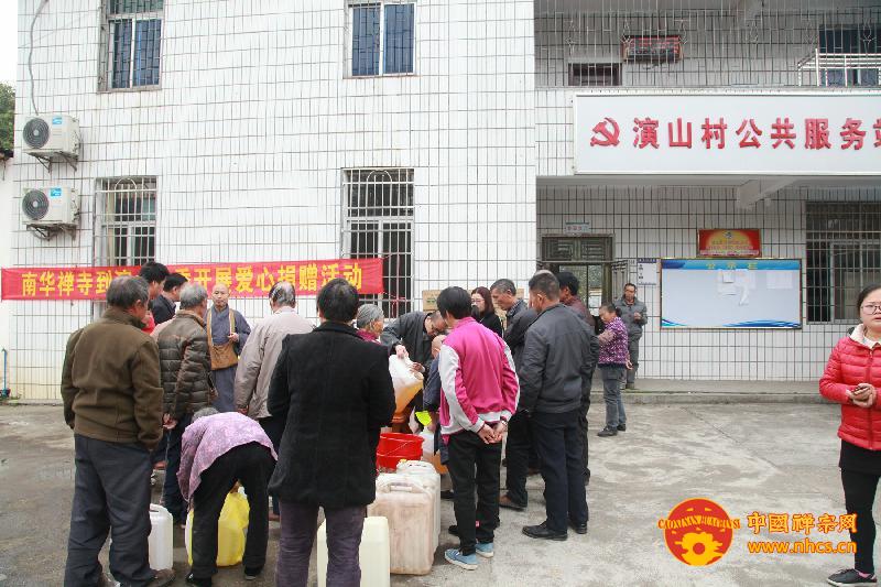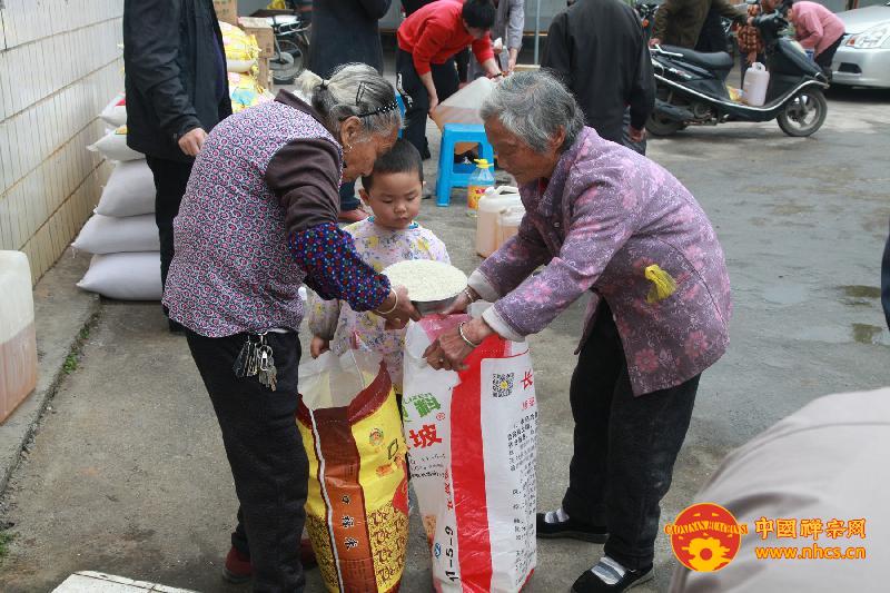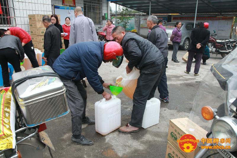 此次物资皆是十方善信供养捐赠,共有大米2500斤,面条700斤,花生油2000斤。受助对象为退休的老党员、老退伍军人以及演山村的精准扶贫对象。
