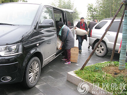 为佛学院学僧送去米油等生活用品(图片来源:凤凰佛教)