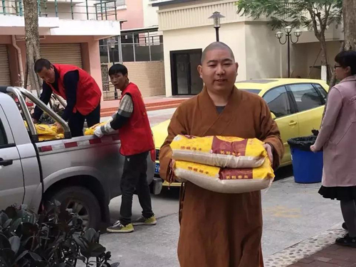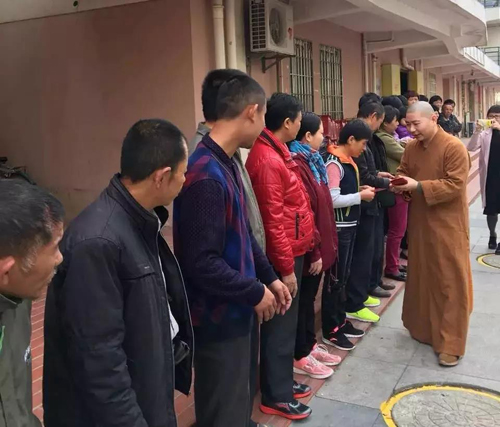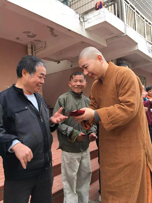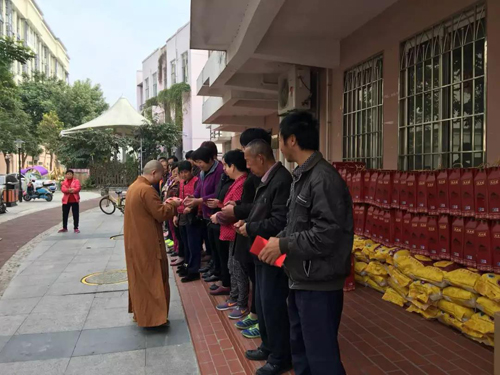 2018年1月18日上午,净威法师、 工作人员沈净西及义工们再次带着石室禅院慈善会会长忠明大和尚的委托与祝福,来到东孚残疾援助中心及新阳残疾职业援助中心开展慰问活动。现场由净威法师及义工们一起亲自将慰问金、粮油、爱心包送到各位困难户代表手中,各个环节在义工们的护持下进行的有条不紊。净威法师表示,自己参与过很多次石室禅院慈善会慰问困难户的活动,今天的慈善慰问活动是多方因缘成就的,这离不开石室禅院慈善会会长忠明大和尚的宏愿与发心,更离不开石室禅院慈善会广大会员及社会各界爱心人士的慈悲大爱。慈善不仅仅是在救度众生,同时也是与众生结善缘。同时净威法师也向各位困难家庭代表转达了忠明大和尚的祝福,希望所有面临困难的家庭及个人都能在佛菩萨的加持下健康、吉祥。
