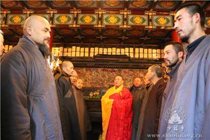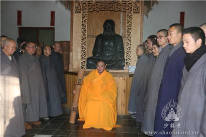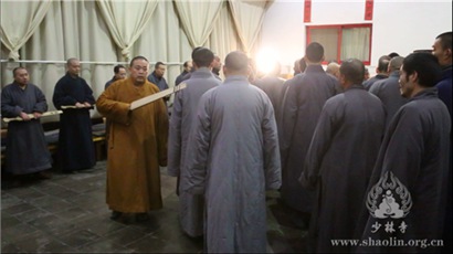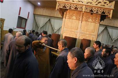 维那师带领众禅和子们到方丈室“消生死假”(图片来源:少林寺官网)