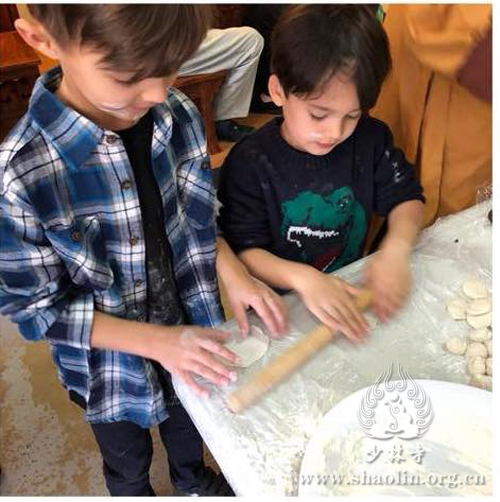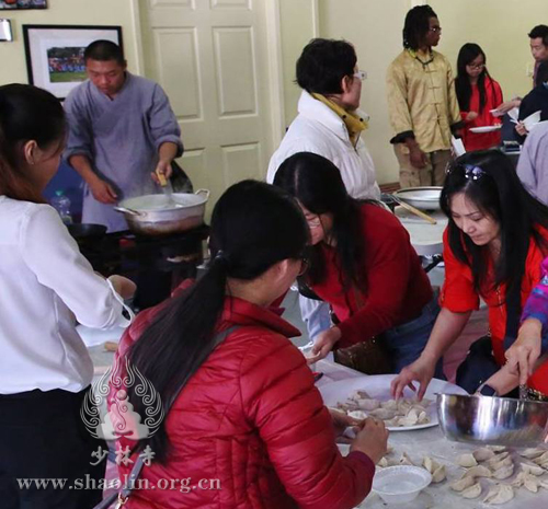 新春传灯祈福结束后,洛杉矶少林文化中心为来宾准备了丰富的新年食品,大家包饺子,品尝美味素食,体验中国书法艺术,一同庆祝中国新年的到来。