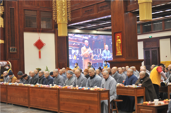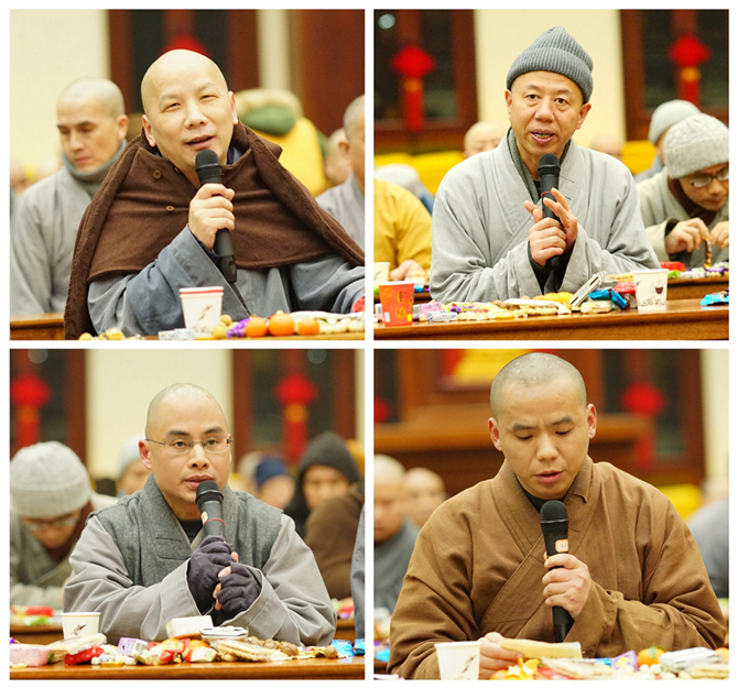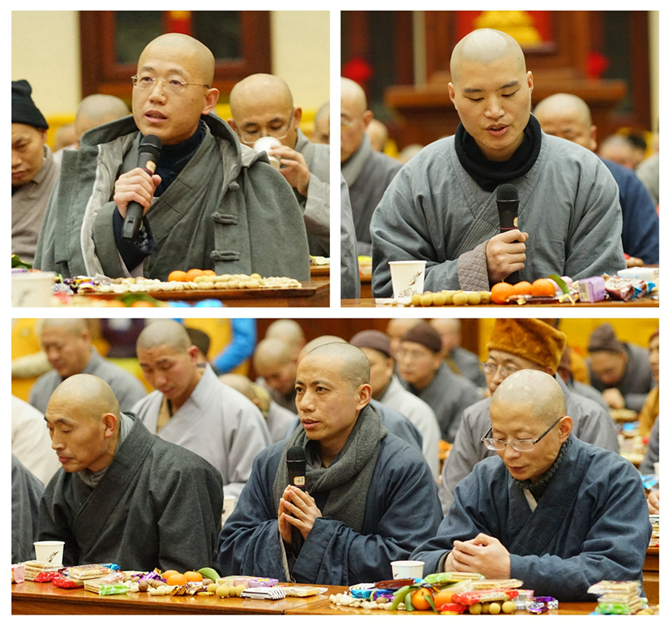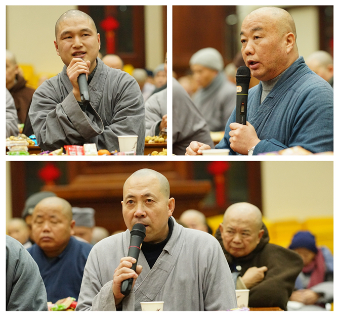 随后,在知客慧播法师和莲社负责人德凯法师的主持下,东林寺首座本通法师、监院兴琳法师、各堂口班首执事以及沙弥师代表、义工代表分别发言,就本堂口工作以及自身的修行体悟做了介绍和分享。