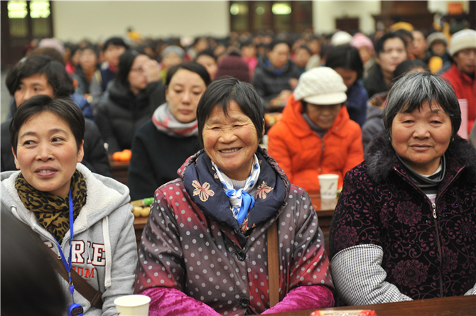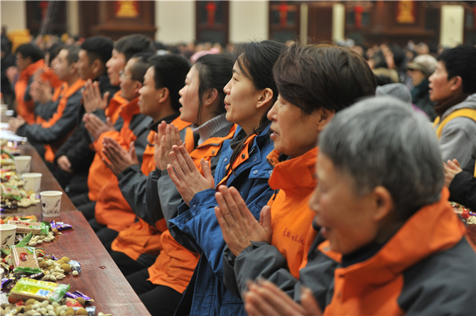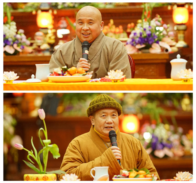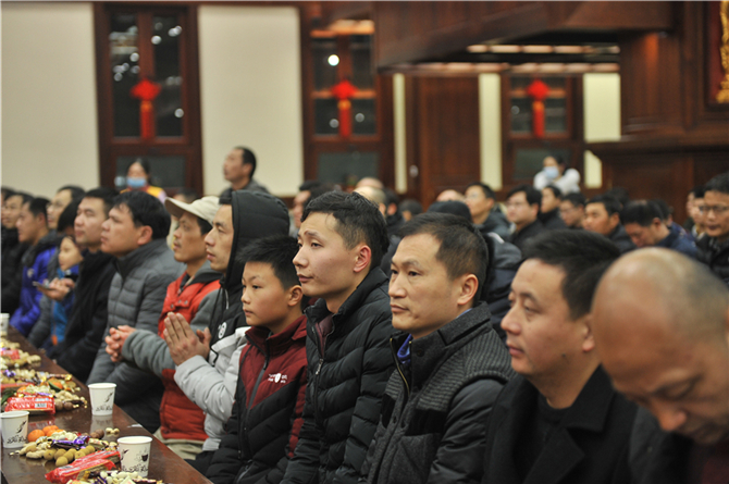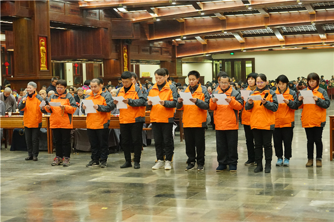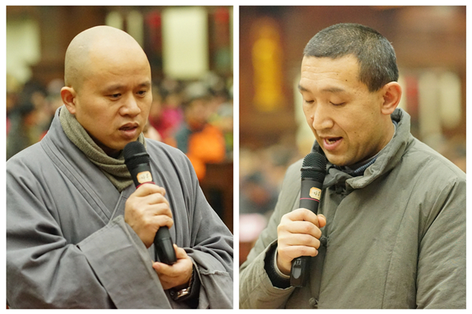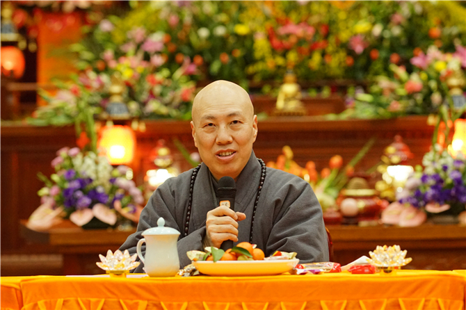 师父们谈工作、谈修行,回顾东林寺过去一年中发生的变化,赞叹护法义工们的辛勤付出,分享自己在修行中的收获,并对义工们提出期待,希望大家能发长远心护持三宝