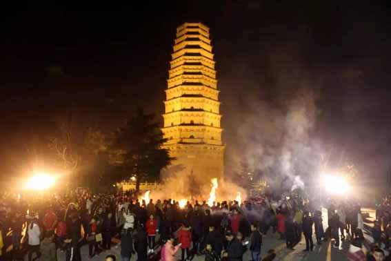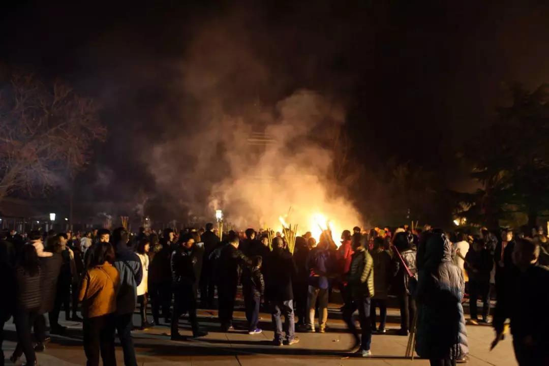 2月15日除夕夜幕降临,就有游客信众已陆续来到法门寺,焚香祈福,祈愿家和万事兴。真身宝塔下,游客信众手持清香自觉有序地跟随人流,绕塔虔诚祈祷,祈求家人健康、心中所愿;大雄宝殿前,游客信众或默闭双眼,或双手合十,或高举清香虔诚祈求新年愿望。