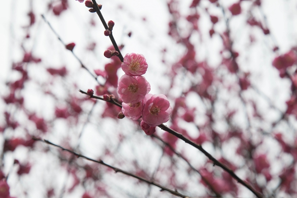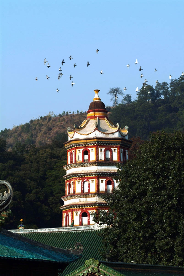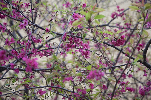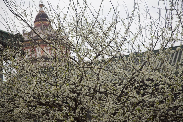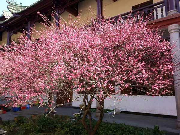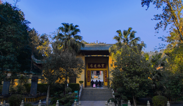寺内殿宇重重,庄严肃穆;郁郁古树,参天而起;山色青青,分外养眼;梅花樱花,交相辉映;鸟儿枝头,欢快歌舞。宝林山中的古道场,仍在向世人展示着它的多姿风采。