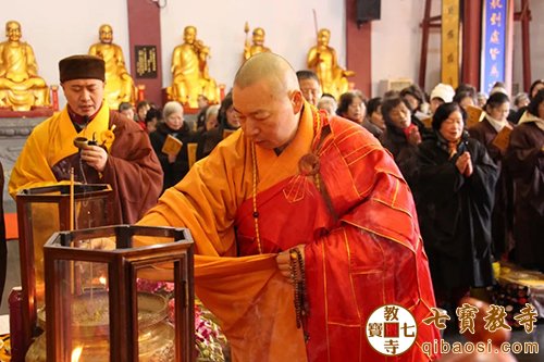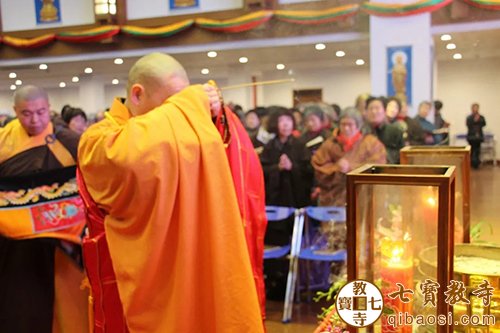 12时30分,中峰三时系念法会在讲经堂举行,七宝教寺常住法师、护法居士共同迎请上海闵行区佛教协会会长、上海七宝教寺方丈慧平大和尚拈香主法。居士善信依次拈香、整齐排列,专心念经、礼佛、忏悔、发愿、清静功德。祈愿三宝加持,各氏门中历代宗亲仰仗弥陀愿力,蒙佛接引、早生净土。并祈愿世界和平、人民安乐、祖国昌盛、社会和谐。整个法会过程如理如法,甚为壮观。