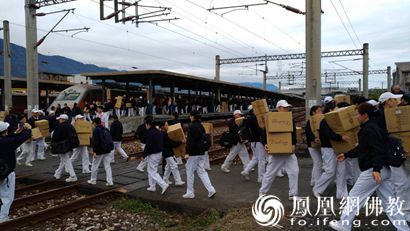 慈济志工搬运救灾物资(图片来源:凤凰网佛教 摄影:慈济基金会)