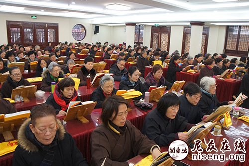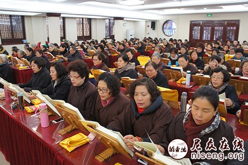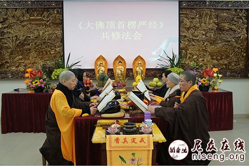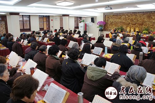 随后居士们在法师的带领下,一起虔诚念诵《大佛顶首楞严经》,梵音嘹亮,气氛庄严殊胜,人天欢喜,一片吉祥。此次《楞严共修法会》自农历正月初六(2月21日)起为期三天(每天上午7时45分开始),欢迎大家随喜参加。