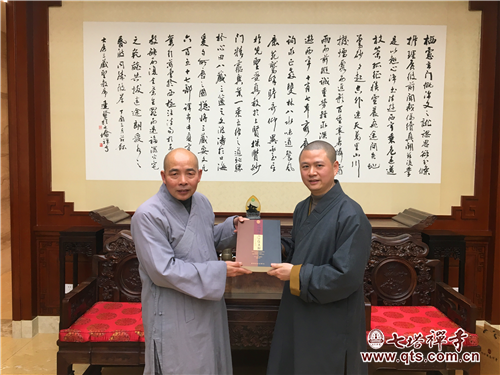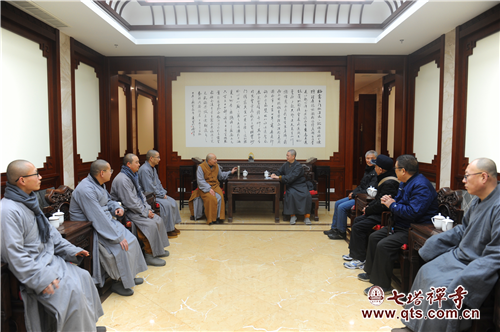 2018年2月25日上午,江苏省佛教协会副会长、苏州市佛教协会会长、苏州西园戒幢律寺方丈普仁法师一行参访七塔禅寺,受到住持可祥法师等热情接待。