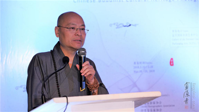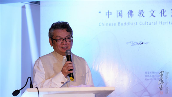 2018年3月16日晚,“中国佛教文化遗产”图片展,在印度孟买国家表演艺术中心展览馆开幕。中国佛教协会副秘书长、杭州灵隐寺住持光泉出席活动并致辞。