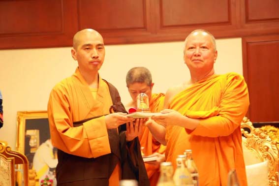 果定法师代表法门寺与梵智长老互赠礼品