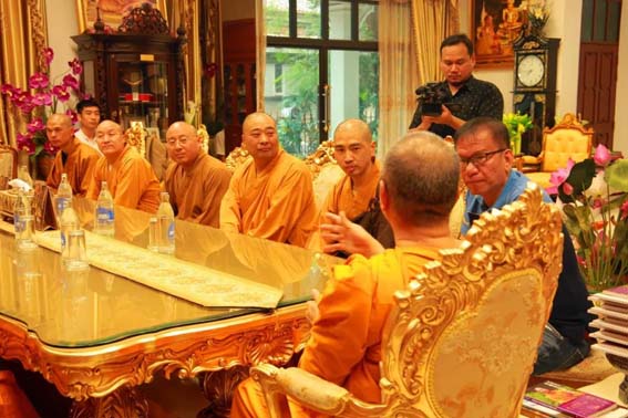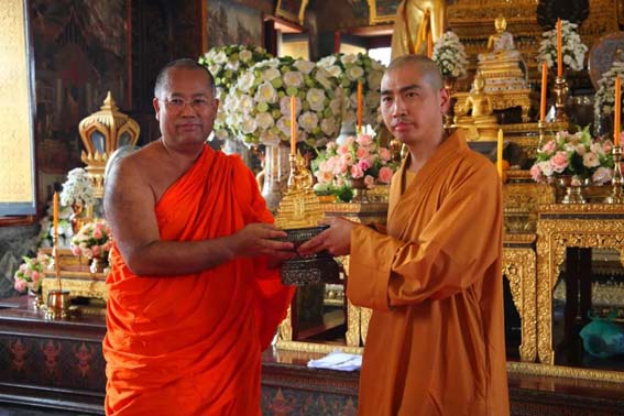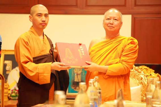 参访团在帕荣寺受到梵智长老的亲切接待。梵智长老表示:“法门寺与帕荣寺缔结为友好寺院,你们今天的到来,正是我们中泰两国佛教友谊最具体、最生动的体现。希望我们中泰双方,今后在佛教的法务、佛经的流通、佛法的弘扬、佛教文化的交流,以及公益慈善的开展等方面,多交流、多互动。我们帕荣寺愿意与法门寺一道,在中泰两国佛教友谊的道路上共同努力、共同前进。”