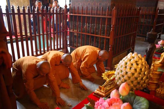 法师们在卧佛寺礼佛