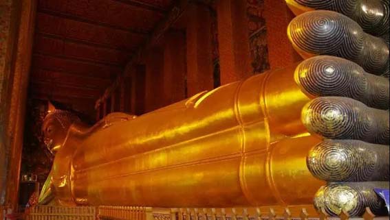 卧佛寺是全曼谷最古老的庙,也是全泰国最大的寺庙。这座寺庙因为两个原因闻名于世:其一,这里是泰国最早的大学,是医学和泰式按摩的发源地;其二,就是顾名思义,寺庙内供奉着泰国最大的卧佛像,全长有46米。