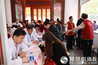 鸿山慈善会在鸿山寺一楼举办义诊(图片来源:凤凰网佛教 摄影:慧德)