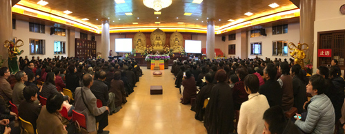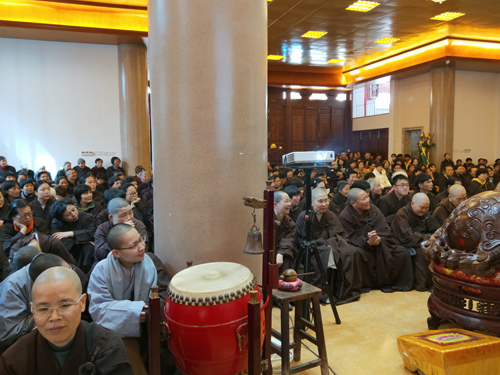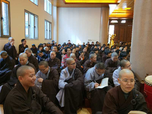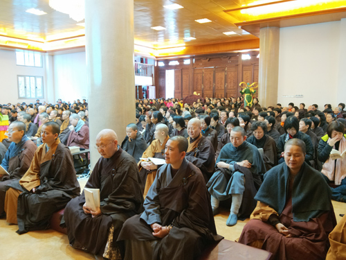 3月11日圆满之际,下午3时湖北当阳玉泉寺方丈道伟大和尚莅临寺院,为大众开示。道伟大和尚用生动活泼的语言,开导与会大众,自性弥陀,唯心净土,是从理上讲。还应从事修入手,持戒念佛、读诵经典、广修福德。用积极阳光的心态修行佛法,念出阿弥陀佛的光明和喜悦。与会大众法喜充满。借此胜缘,由净莲寺住持向成法师代表两序大众礼请道伟大和尚为寺院佛法导师。晚八时,讲经法会在大众的掌声中圆满结束。