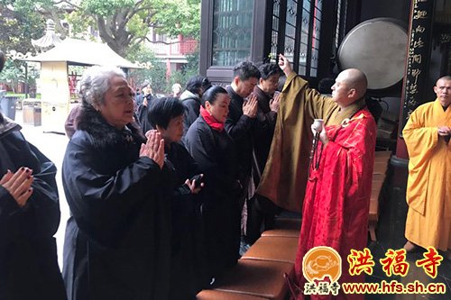 随后,圣怀法师引领僧俗大众,并以杨枝净水遍洒道场,令坛场清净无染,大众三障蠲除。