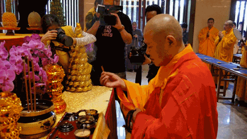 下午13时30分,寒山寺两序大众迎请中国佛教协会副秘书长、江苏省佛教协会常务副会长、寒山寺、重元寺方丈秋爽大和尚为启动仪式拈香主法。秋爽大和尚登法座,秉拂尘,现场慈悲开示。