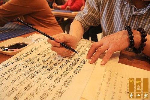 秋爽大和尚现场带领十方善信用毛笔,一心一意一句一字的抄写经书。大众在一笔一划中体验专注的宁静,感悟佛理,提升心灵。