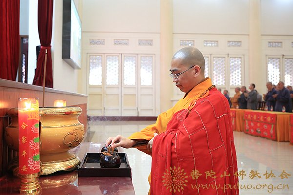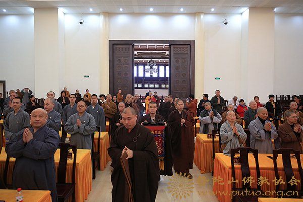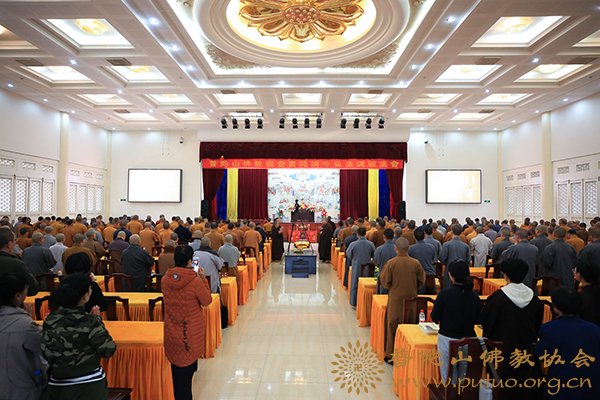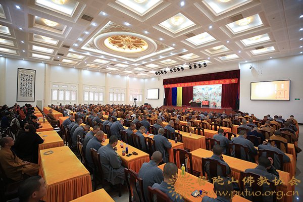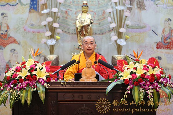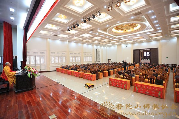 2018年4月15日下午,中国佛学院普陀山学院副教务长照慧法师,应邀于普陀山宝陀讲寺普门讲堂作了题目为《丛林要则》佛学专题讲座。全山各寺院僧众、中国佛学院普陀山学院学僧和随喜护法居士近300人参加了讲经法会。